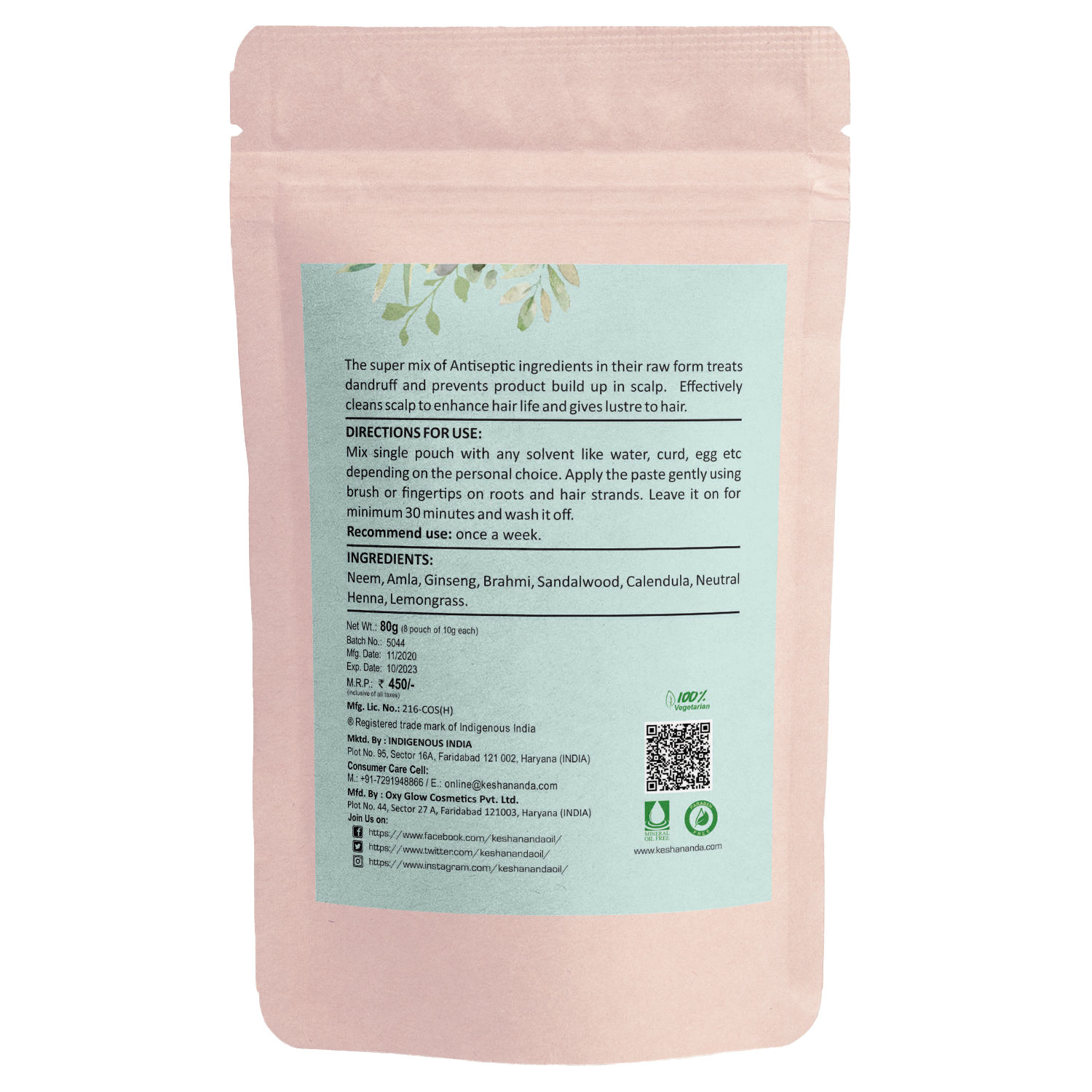 The super mix of raw herbs such as calendula, sandalwood, Lemongrass, Ginseng, Brahmi, Bhringraj, Amla and neem acts as natural cleansers for the scalp. The herbs are premium quality and lab tested. No artificial color or fragrance is added. Make a paste of herbs using curd or any solvent of your choice for a home spa for the stronger and healthier hair. The power pack is for the regular traveler and comprises of 8 one time use sachets of 10gm each.