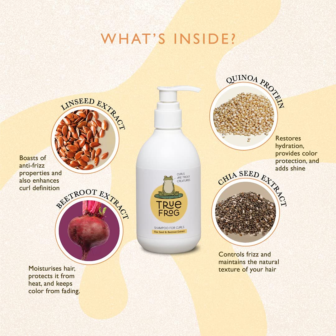 Enriched with Beetroot, cornstarch and quinoa protein & made with all biodegradable ingredients this shampoo for curls is a safe formulation with no sulfates, no silicones, no parabens and allergens.